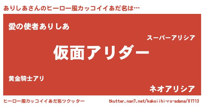 | ヘコむあだ名 | 『ありしあ(苦笑)』『ありっふぃ~』 |