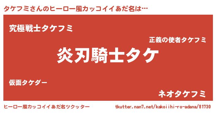 | 女子向けラノベタイトル風あだ名 | 『タケフミ様がみてる』 |