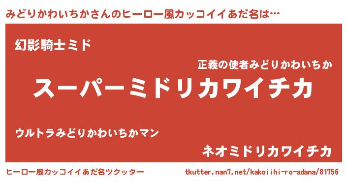 | ポケモン風あだ名 | 『ミドチュウ』『ヒミドリカワイチカ』 |