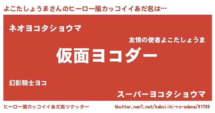 | 意味不明あだ名 | 『住所不定無職よこたしょうま(1歳)』 |