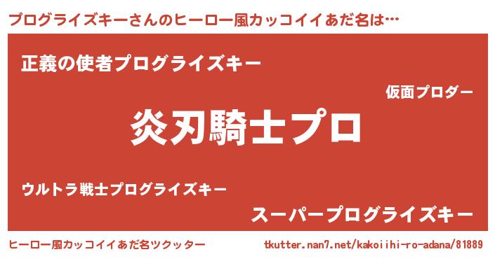| 男性向けラノベタイトル風あだ名 | 『プログライズキーの嫁は女の子じゃないと思った?』 |