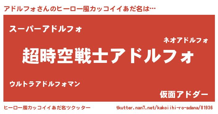 | 男性向けラノベタイトル風あだ名 | 『魔法科高校のアドルフォ』 |