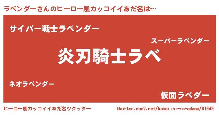 | 男性向けラノベタイトル風あだ名 | 『ラベンダーの嫁は女の子じゃないと思った?』 |