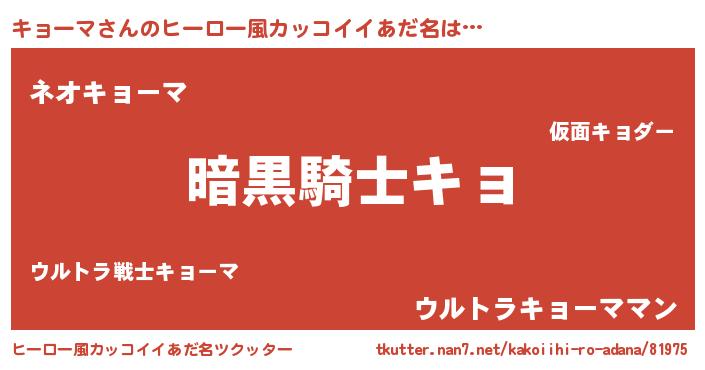 | 男性向けラノベタイトル風あだ名 | 『キョーマスレイヤー』 |