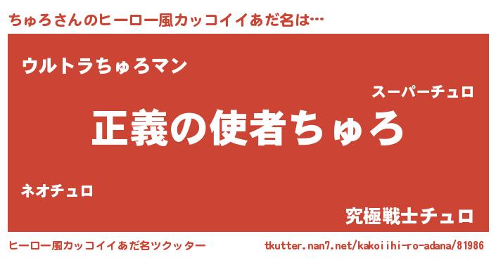 | 意味不明あだ名 | 『眠気覚ましガムちゅろ味』『自称ちゅろ』 |