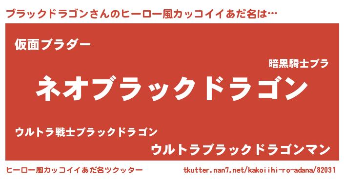 | 男性向けラノベタイトル風あだ名 | 『ブラックドラゴンという概念が存在しない退屈な世界 』 |