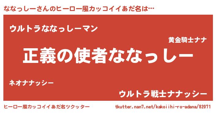 | 男性向けラノベタイトル風あだ名 | 『おまえをオタクにしてやるから、俺をななっしーにしてくれ! 』 |