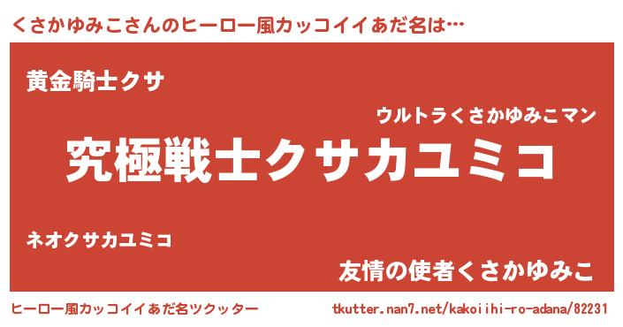 | 女子向けラノベタイトル風あだ名 | 『くさかゆみこストレイドッグス』 |