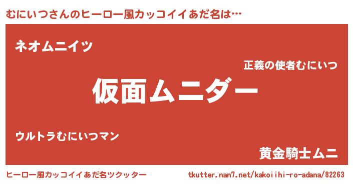 | 男性向けラノベタイトル風あだ名 | 『この素晴らしい世界にむにいつを!』 |