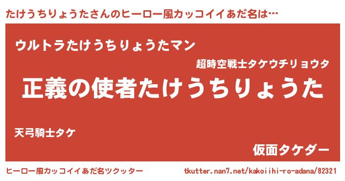 | 女子向けラノベタイトル風あだ名 | 『シンデレラたけうちりょうた家の靴箱館』 |