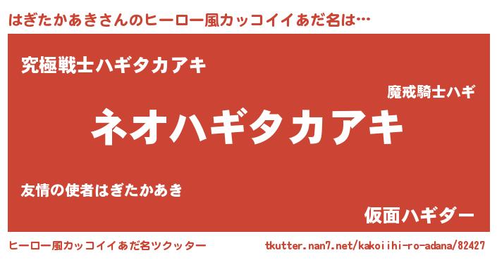 | 男性向けラノベタイトル風あだ名 | 『転生したらはぎたかあきだった件』 |
