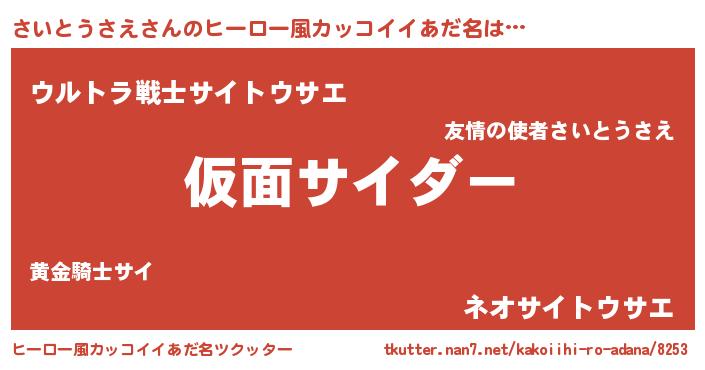 | 胡散臭い通販商品みたいなあだ名 | 『あなたにだけ特別に提供する100年もののヴィンテージワイン…その名も「さいとうさえ」』 |