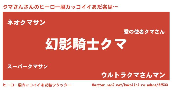 | 男性向けラノベタイトル風あだ名 | 『クマさんの嫁は女の子じゃないと思った?』 |
