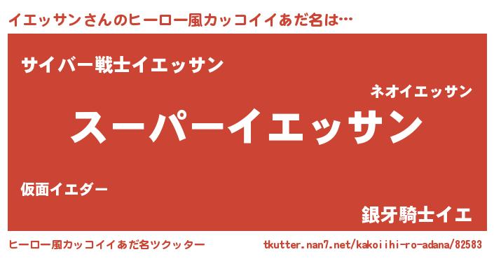 | 男性向けラノベタイトル風あだ名 | 『イエッサンの憂鬱』 |