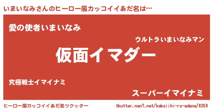 | 男性向けラノベタイトル風あだ名 | 『この素晴らしい世界にいまいなみを!』 |