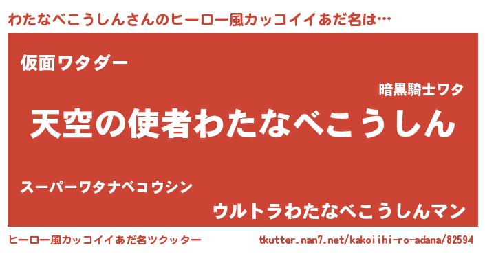 | 男性向けラノベタイトル風あだ名 | 『ノーゲーム・ノーワタナベコウシン』 |