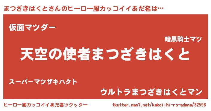 | 男性向けラノベタイトル風あだ名 | 『うちのまつざきはくとが世界を掌握している!』 |