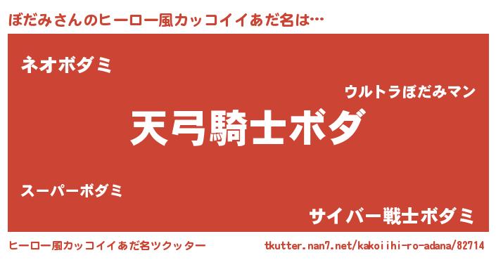 | 男性向けラノベタイトル風あだ名 | 『ぼだみの嫁は女の子じゃないと思った?』 |