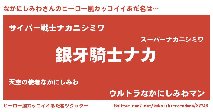 | 男性向けラノベタイトル風あだ名 | 『転生したらなかにしみわだった件』 |