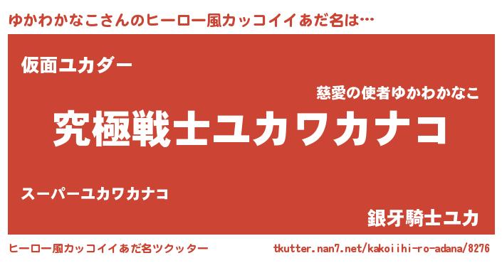 | 男性向けラノベタイトル風あだ名 | 『Re:ゆかわかなこから始める異世界生活』 |