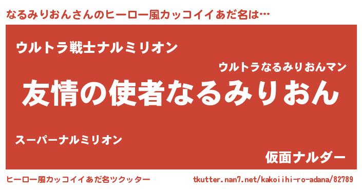 | 男性向けラノベタイトル風あだ名 | 『おまえをオタクにしてやるから、俺をなるみりおんにしてくれ! 』 |