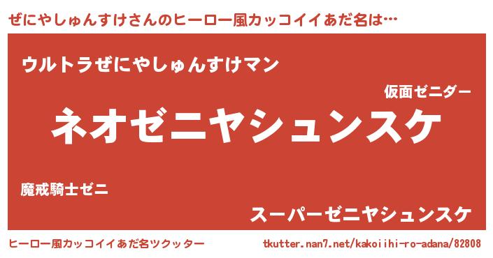 | 胡散臭い通販商品みたいなあだ名 | 『絶対に幸福をもたらす水素水…その名も「ぜにやしゅんすけ」』 |