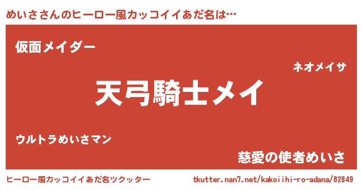 | 女子向けラノベタイトル風あだ名 | 『めいさ様がみてる』『死神めいさの再婚』 |