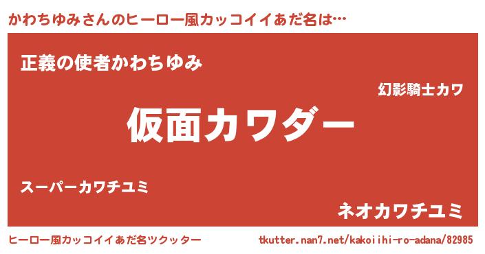 | ヘコむあだ名 | 『かわちゆみ(爆)』『かわっぺ』 |