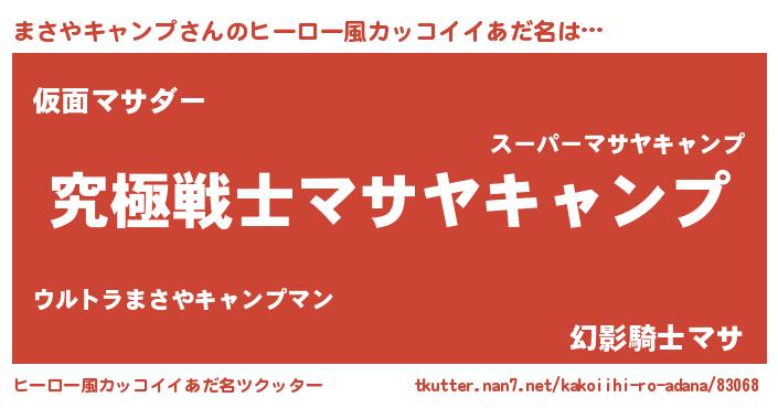 | 女子向けラノベタイトル風あだ名 | 『まさやキャンプストレイドッグス』 |