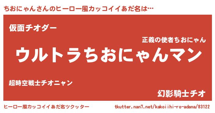 | 欧米人風あだ名 | 『ちおにゃんクリステル』 |