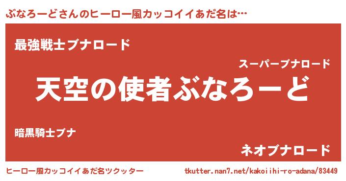 | 男性向けラノベタイトル風あだ名 | 『ぶなろーどに滅ぼされるだけの簡単なお仕事です』 |