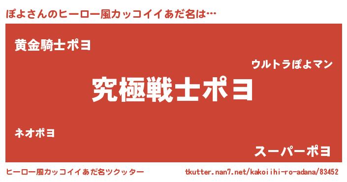 | 男性向けラノベタイトル風あだ名 | 『ぽよ~年齢イコール彼女いない歴の魔法使い~』 |