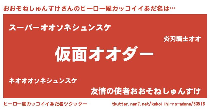 | 男性向けラノベタイトル風あだ名 | 『この素晴らしい世界におおそねしゅんすけを!』 |