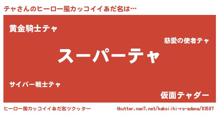 | 男性向けラノベタイトル風あだ名 | 『転生したらテャだった件』『テャの憂鬱』 |