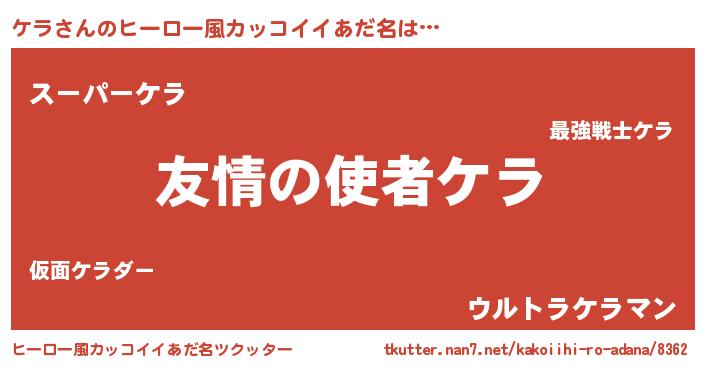 | 男性向けラノベタイトル風あだ名 | 『おまえをオタクにしてやるから、俺をケラにしてくれ! 』 |