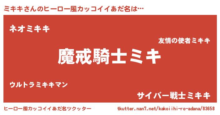 | 胡散臭い通販商品みたいなあだ名 | 『信頼と実績のサプリメント…その名も「ミキキ」』 |