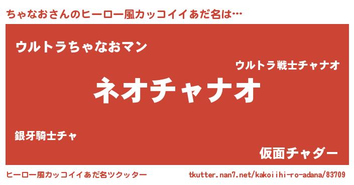 | 男性向けラノベタイトル風あだ名 | 『ちゃなおに滅ぼされるだけの簡単なお仕事です』 |