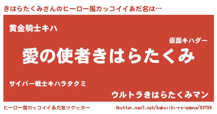 | ヘコむあだ名 | 『きは太郎』『豆乳』『きはにゅー』 |