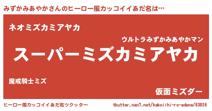 | ヘコむあだ名 | 『みずにゅー』『みずかみあやか(遠い目)』 |