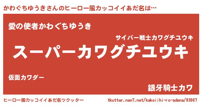 | 男性向けラノベタイトル風あだ名 | 『カワグチユウキアートオンライン』 |