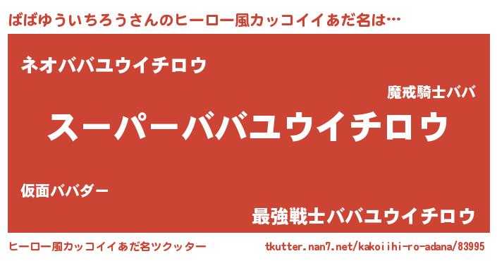 | 男性向けラノベタイトル風あだ名 | 『ばばゆういちろうに滅ぼされるだけの簡単なお仕事です』 |