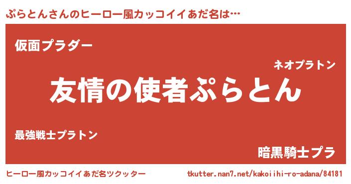 | 意味不明あだ名 | 『めかぶ科ぷらとん属』 |