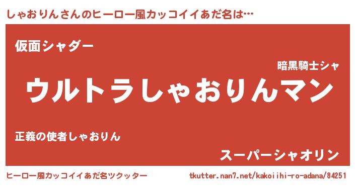 | 女子向けラノベタイトル風あだ名 | 『しゃおりんの雑貨屋さん』 |