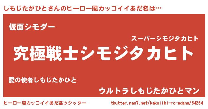 | 意味不明あだ名 | 『自称しもじたかひと』 |