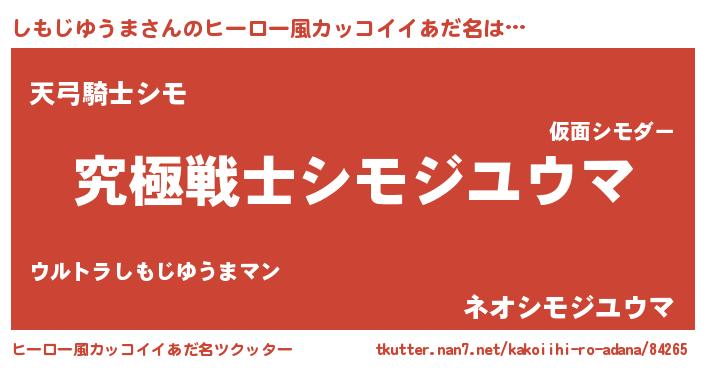 | 男性向けラノベタイトル風あだ名 | 『Re:しもじゆうまから始める異世界生活』 |