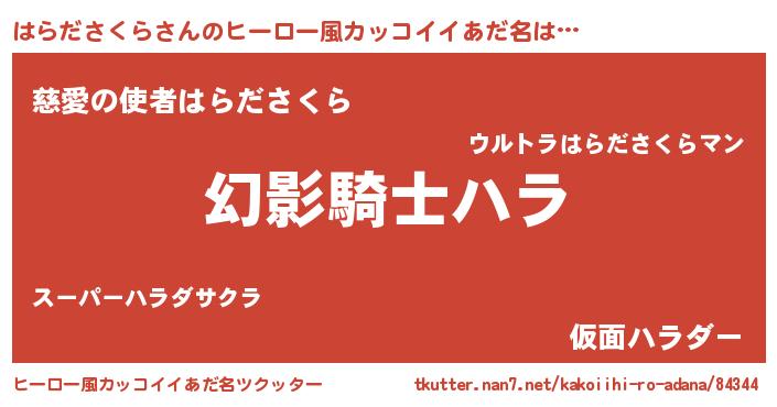 | 男性向けラノベタイトル風あだ名 | 『はらださくらの嫁は女の子じゃないと思った?』 |