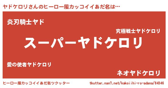 | 女子向けラノベタイトル風あだ名 | 『ヤドケロリの玉の輿計画!』 |