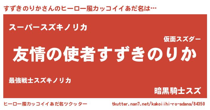 | 男性向けラノベタイトル風あだ名 | 『おまえをオタクにしてやるから、俺をすずきのりかにしてくれ! 』 |