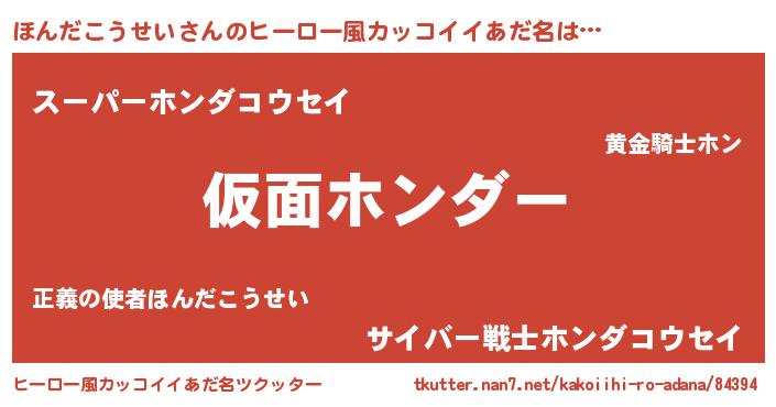 | 意味不明あだ名 | 『住所不定無職ほんだこうせい(62歳)』 |
