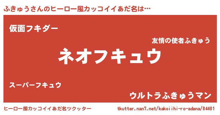 | 男性向けラノベタイトル風あだ名 | 『ふきゅうという概念が存在しない退屈な世界 』 |